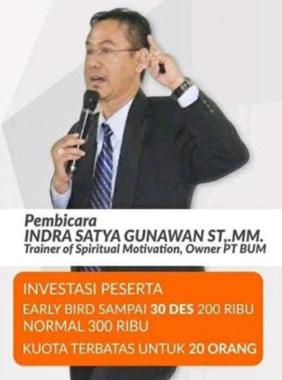 Indra Satya Gunawan ST,.MM adalah seorang praktisi Sumber Daya Manusia, Master Trainer Motivasi, Spiritual dan Teamwork, Pengusaha dibidang Industri training, serta pembicara publik di acara seminar, workshop dan inhouse training. Beliau sudah cukup berpengalaman didalam dunia kerja, berikut pengalaman beliau selama didunia kerja.